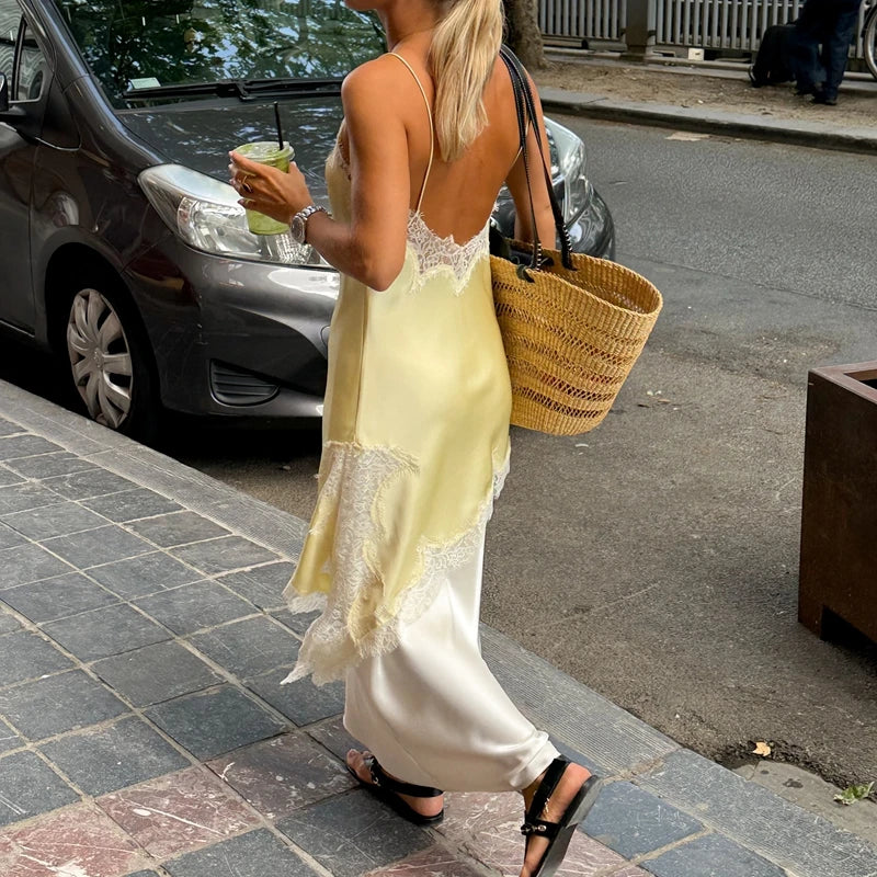 The InMyEndz Queens Asym Satin Cami brings high-end finesse with floral lace trimming, spaghetti straps, and an asymmetrical split hem that moves like liquid confidence. The silky satin drapes effortlessly — catching light, shaping flow, and delivering elegance without apology.